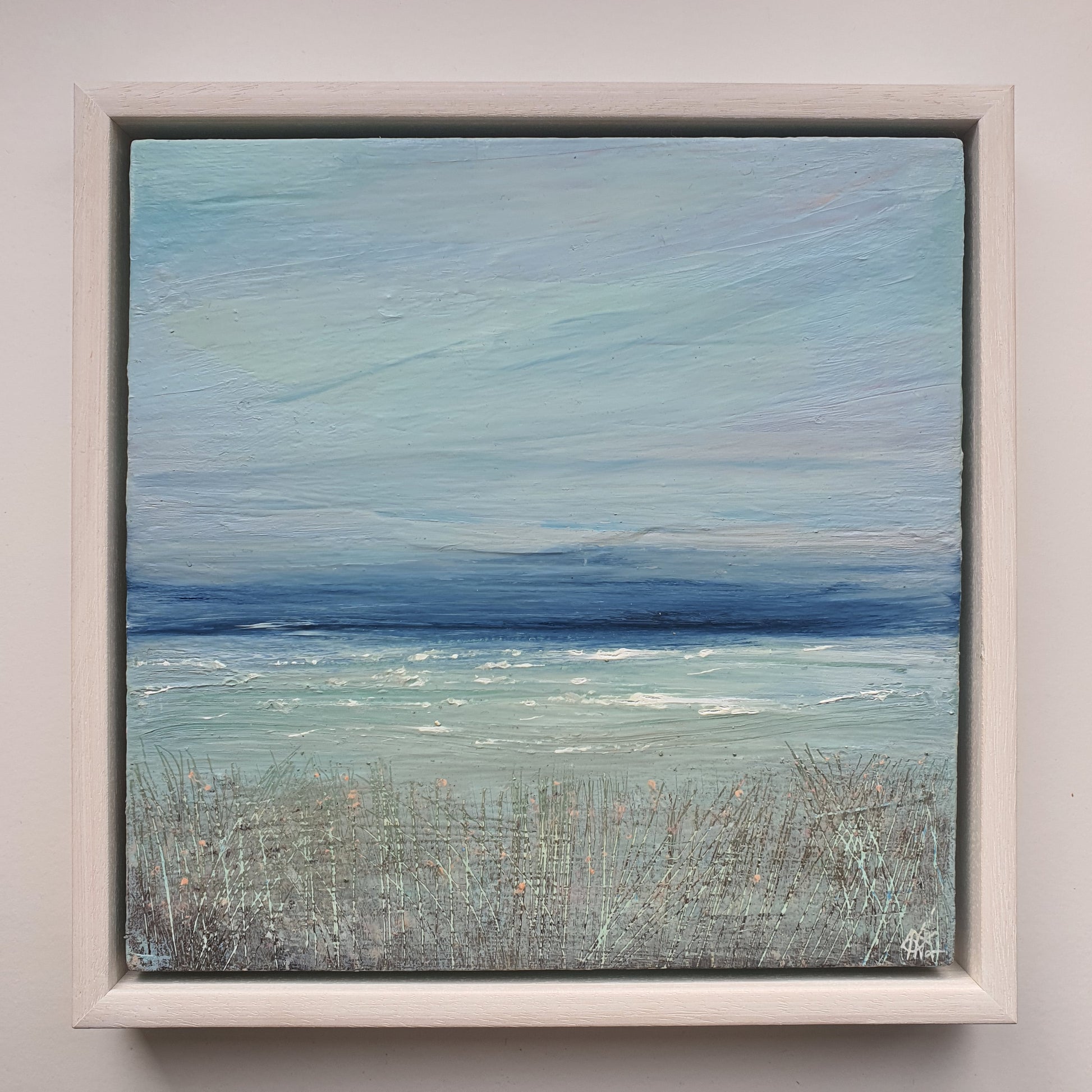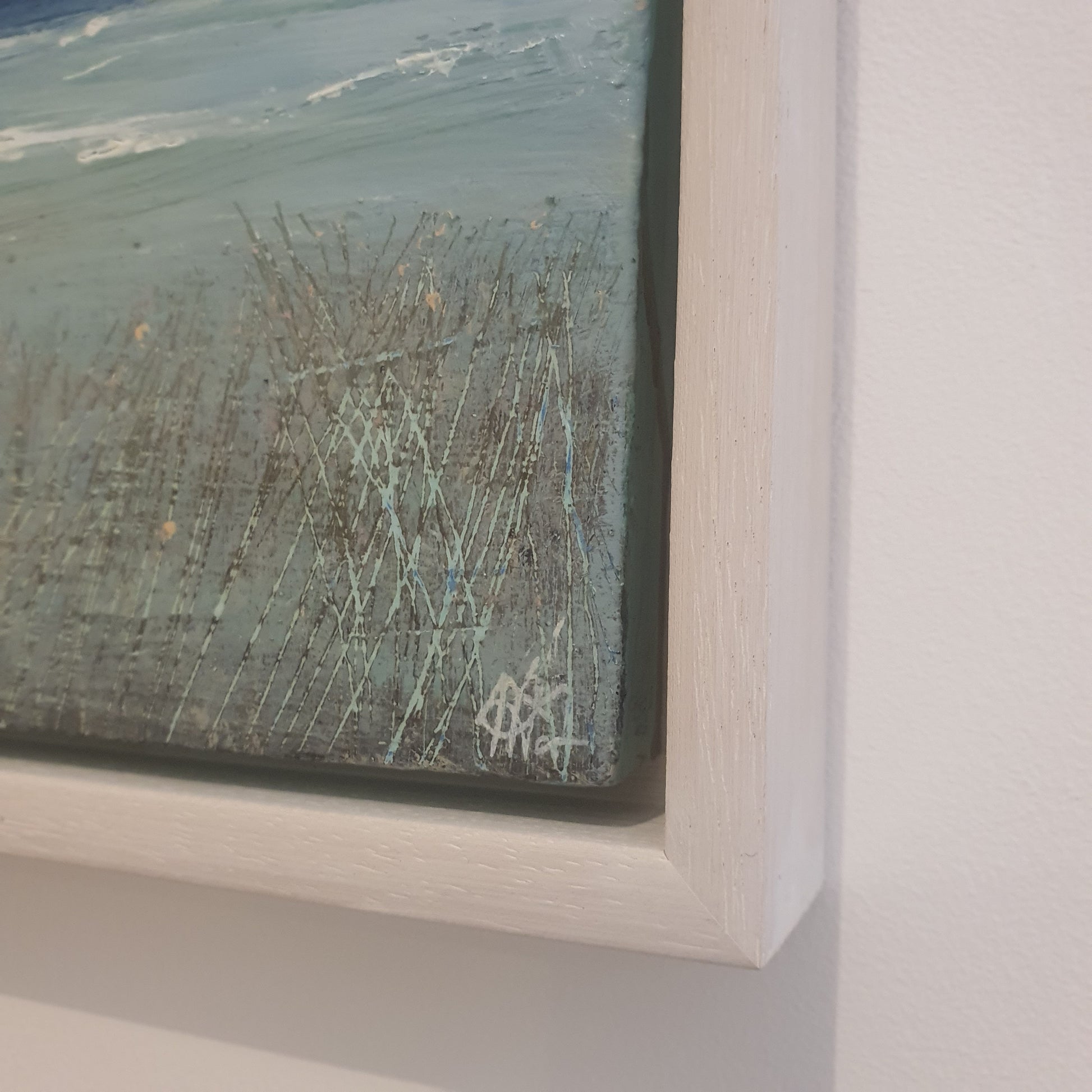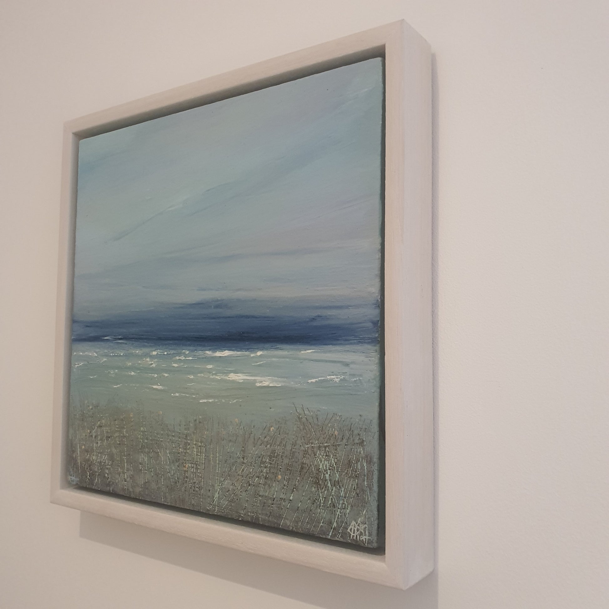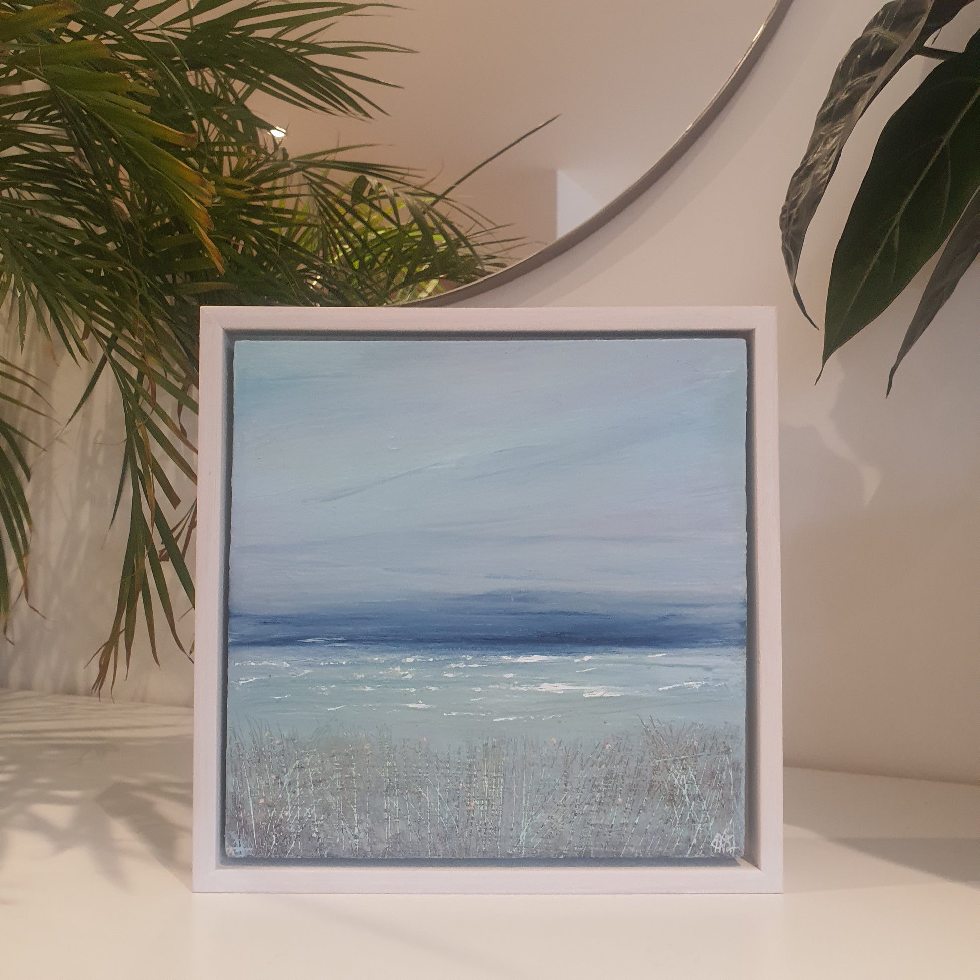 An original oil on board, beautifully presented in a contemporary white wooden floating frame.