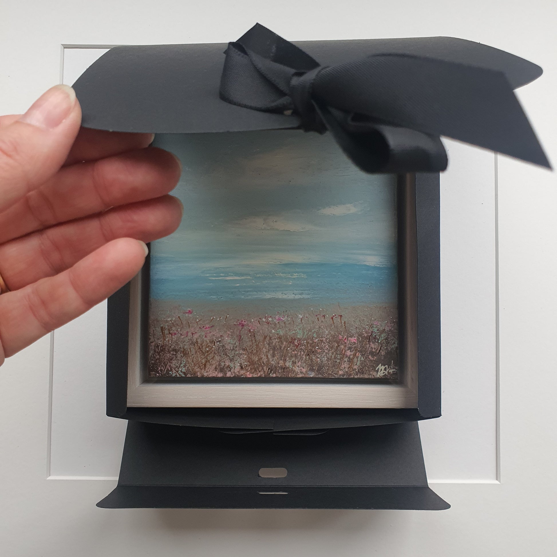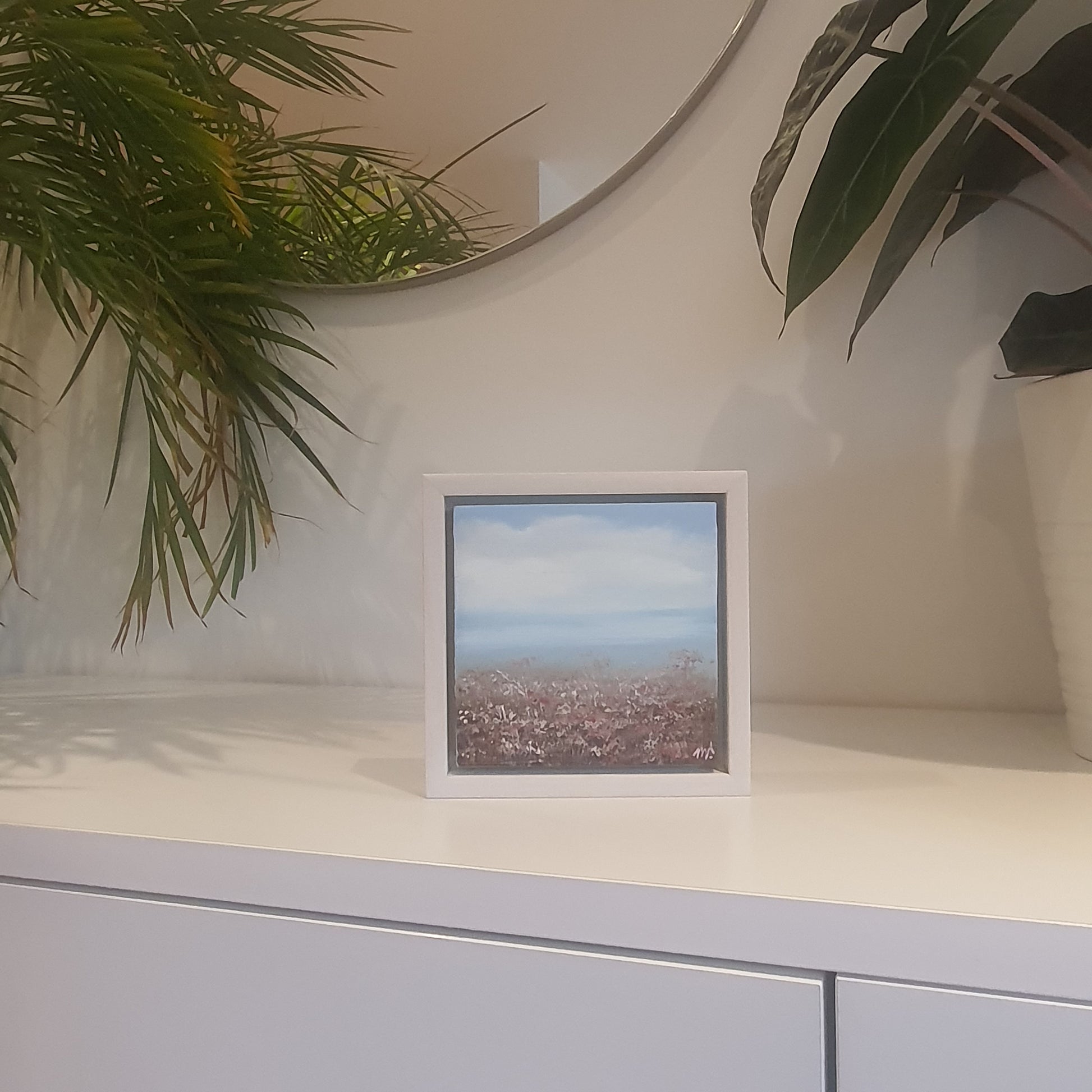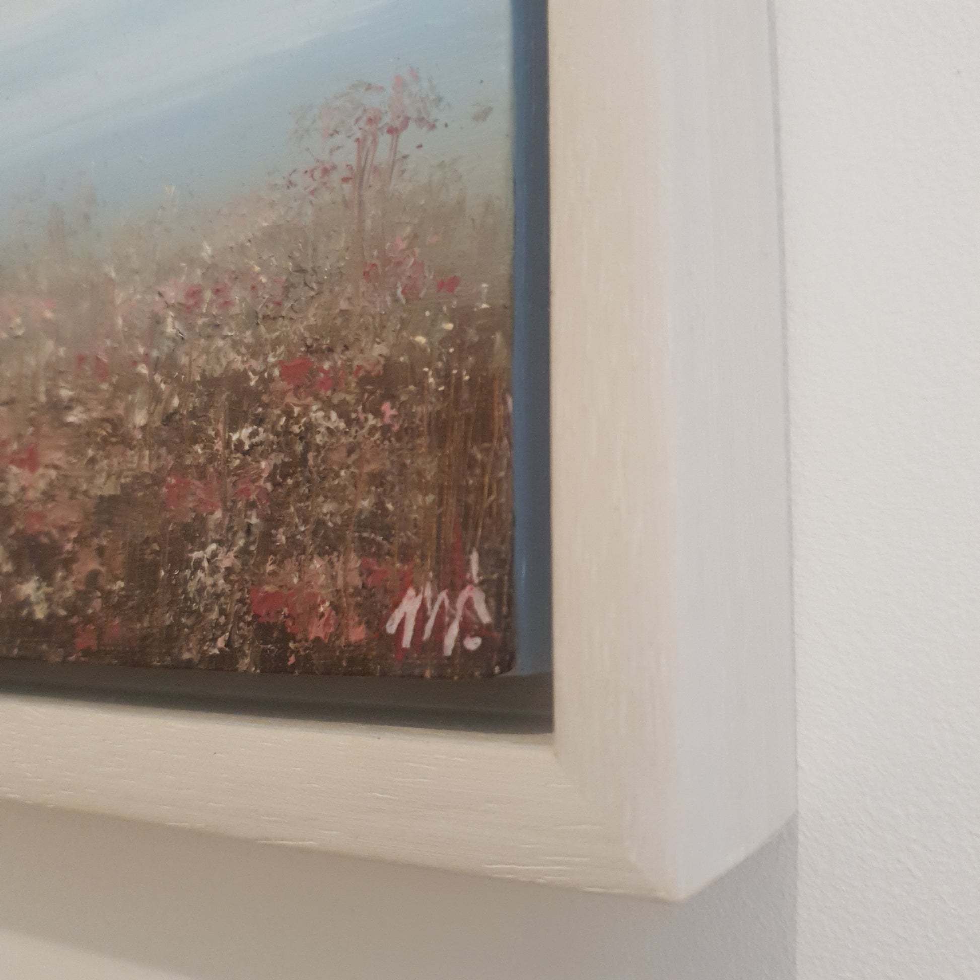 An original oil on board, beautifully presented in a contemporary white wooden floating frame.